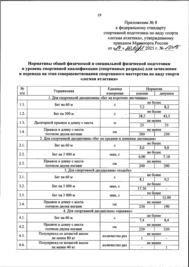"ОБ УТВЕРЖДЕНИИ ФЕДЕРАЛЬНОГО СТАНДАРТА СПОРТИВНОЙ ПОДГОТОВКИ ПО ВИДУ СПОРТА "ЛЕГКАЯ АТЛЕТИКА"
