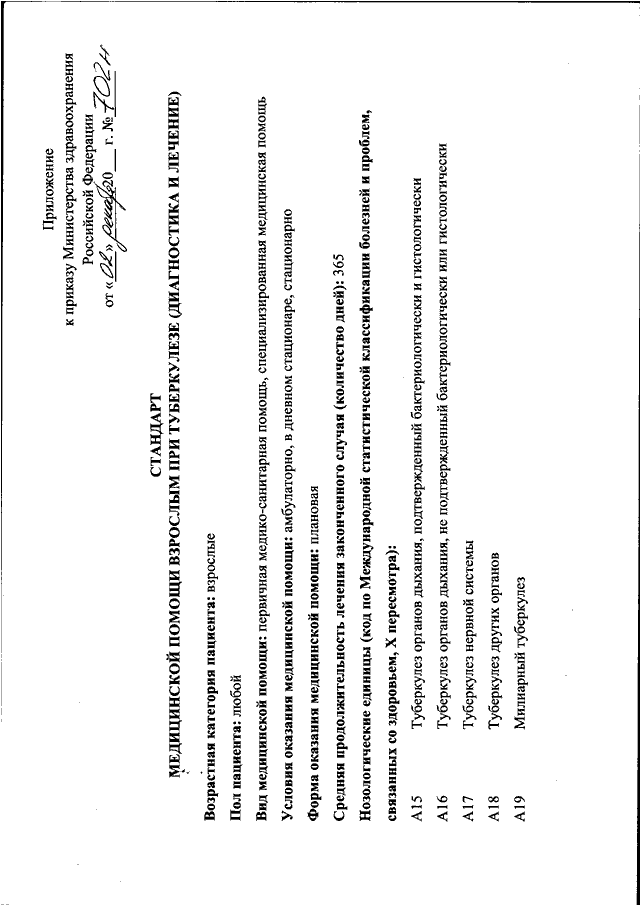 "ОБ УТВЕРЖДЕНИИ СТАНДАРТА МЕДИЦИНСКОЙ ПОМОЩИ ВЗРОСЛЫМ ПРИ ТУБЕРКУЛЕЗЕ (ДИАГНОСТИКА И ЛЕЧЕНИЕ)"