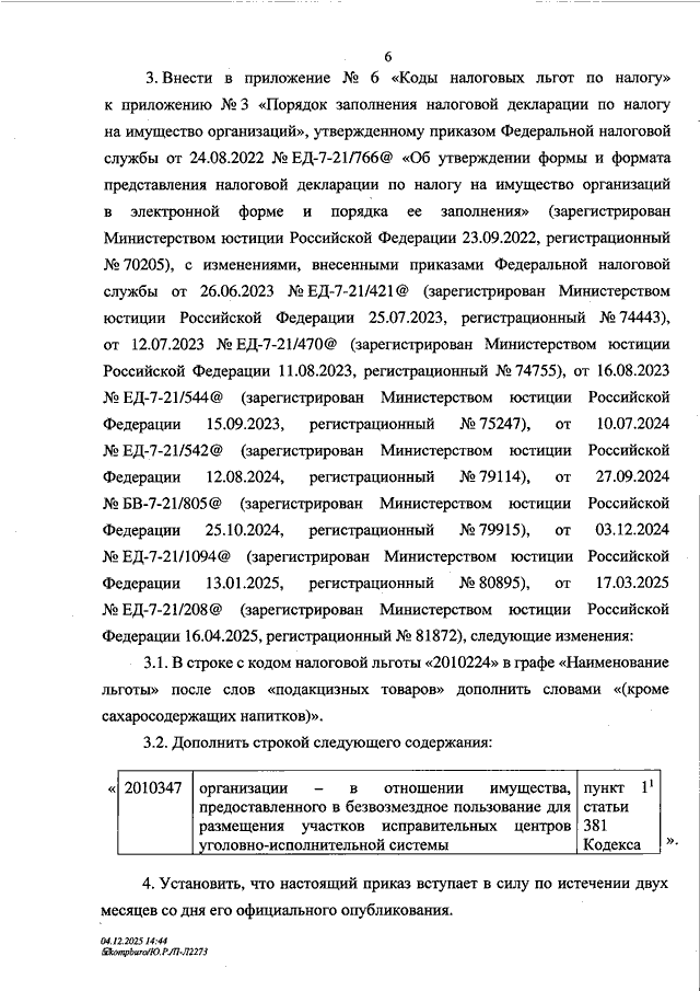 ПРИКАЗ ФНС РФ от 08.12.2025 N ЕД-7-21/1052@