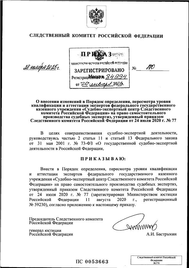 ПРИКАЗ Следственного комитета РФ от 28.11.2025 N 170