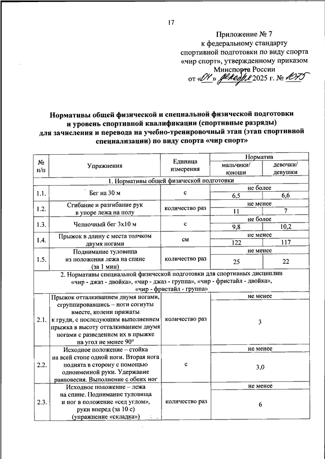 "ОБ УТВЕРЖДЕНИИ ФЕДЕРАЛЬНОГО СТАНДАРТА СПОРТИВНОЙ ПОДГОТОВКИ ПО ВИДУ СПОРТА "ЧИР СПОРТ"