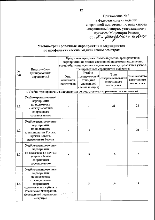 ПРИКАЗ Минспорта РФ от 04.12.2025 N 1077