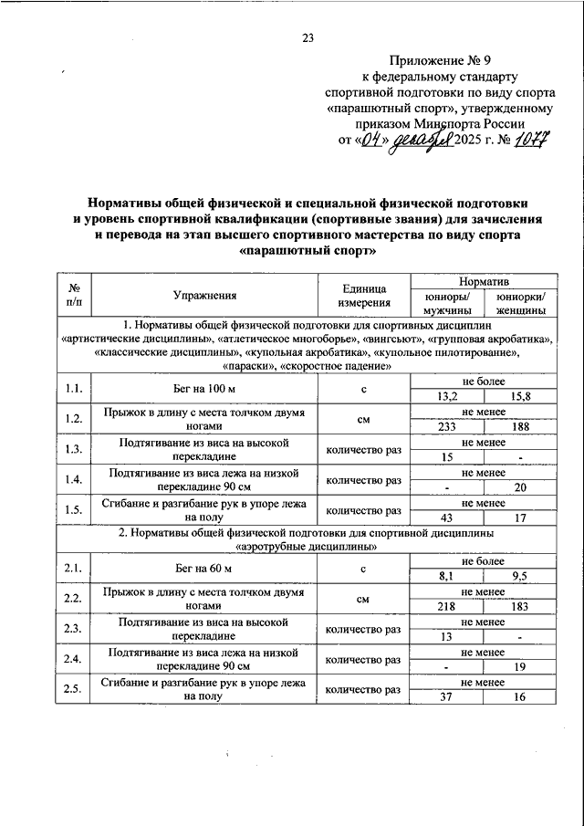 ПРИКАЗ Минспорта РФ от 04.12.2025 N 1077
