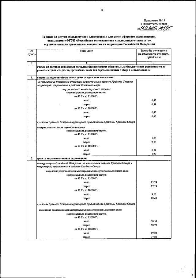 "ОБ УТВЕРЖДЕНИИ ТАРИФОВ НА УСЛУГИ ОБЩЕДОСТУПНОЙ ЭЛЕКТРОСВЯЗИ ДЛЯ ЦЕЛЕЙ ЭФИРНОГО ТЕЛЕВИЗИОННОГО ВЕЩАНИЯ И (ИЛИ) РАДИОВЕЩАНИЯ, ОКАЗЫВАЕМЫЕ ФГУП "РОССИЙСКАЯ ТЕЛЕВИЗИОННАЯ И РАДИОВЕЩАТЕЛЬНАЯ СЕТЬ", ОСУЩЕСТВЛЯЮЩИМ ТРАНСЛЯЦИЮ, ВЕЩАТЕЛЯМ"