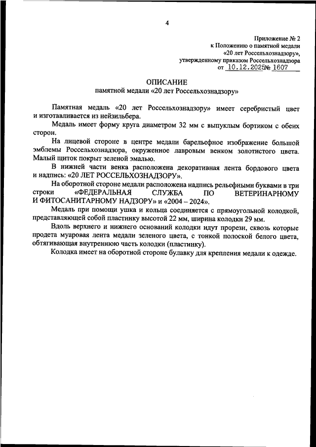 "ОБ УЧРЕЖДЕНИИ ПАМЯТНОЙ МЕДАЛИ "20 ЛЕТ РОССЕЛЬХОЗНАДЗОРУ"