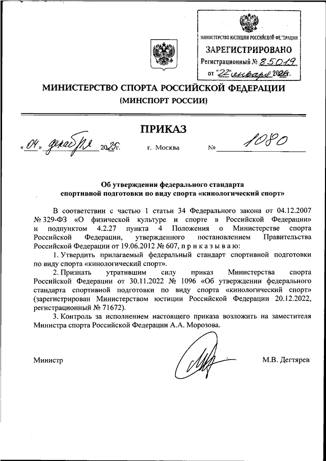 ПРИКАЗ Минспорта РФ от 04.12.2025 N 1080