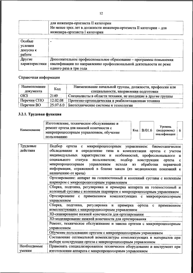 "ОБ УТВЕРЖДЕНИИ ПРОФЕССИОНАЛЬНОГО СТАНДАРТА "ИНЖЕНЕР-ОРТЕЗИСТ"