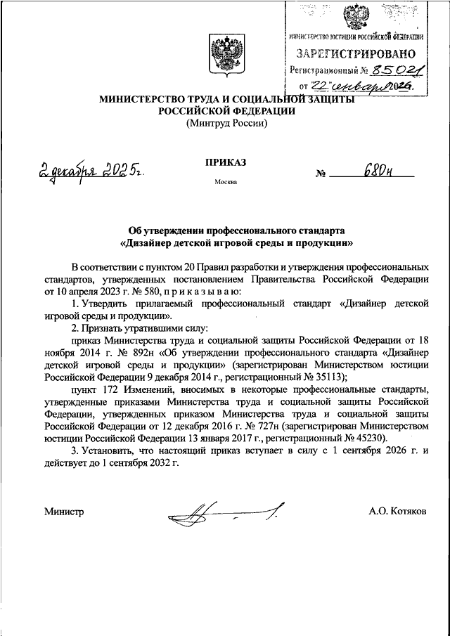 ПРИКАЗ Минтруда РФ от 02.12.2025 N 680н
