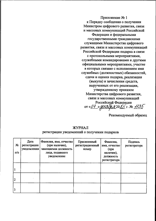 ПРИКАЗ Минцифры России от 04.12.2025 N 1135