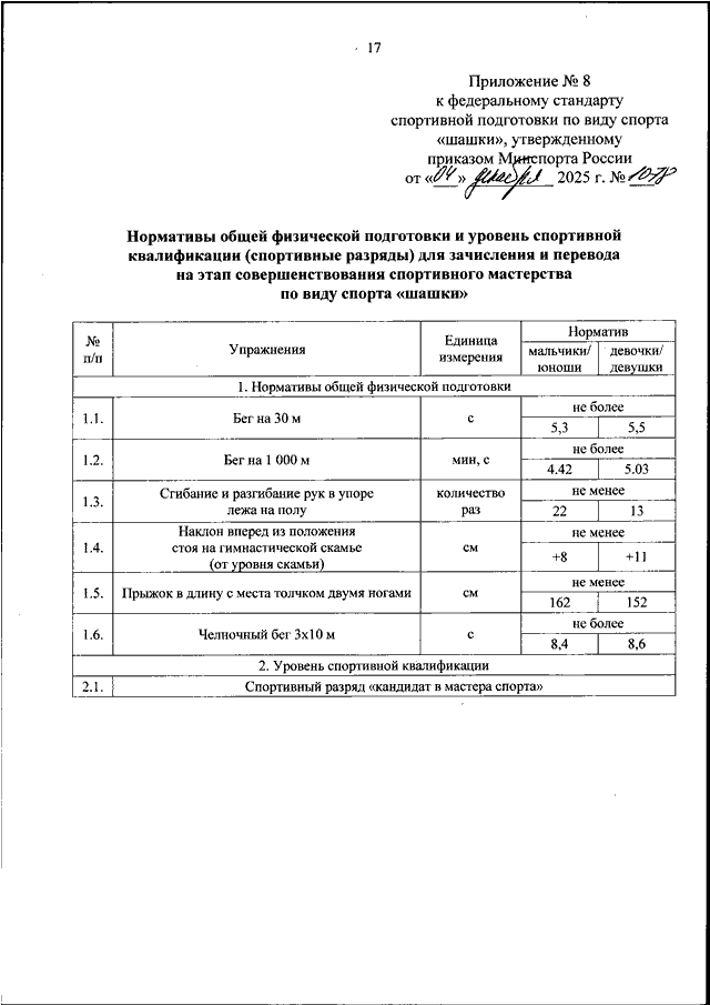 "ОБ УТВЕРЖДЕНИИ ФЕДЕРАЛЬНОГО СТАНДАРТА СПОРТИВНОЙ ПОДГОТОВКИ ПО ВИДУ СПОРТА "ШАШКИ"