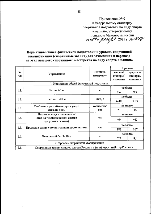 ПРИКАЗ Минспорта РФ от 04.12.2025 N 1078