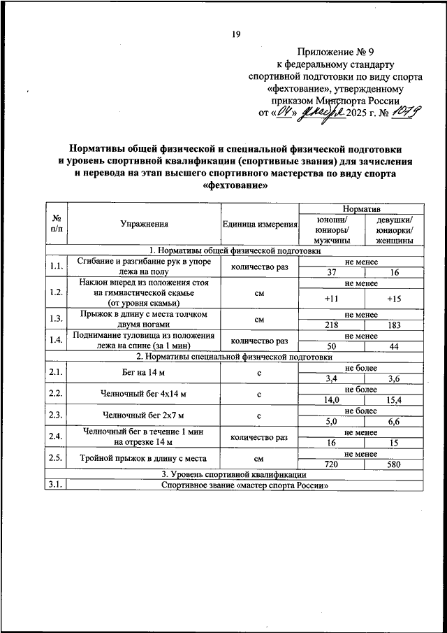 ПРИКАЗ Минспорта РФ от 04.12.2025 N 1079