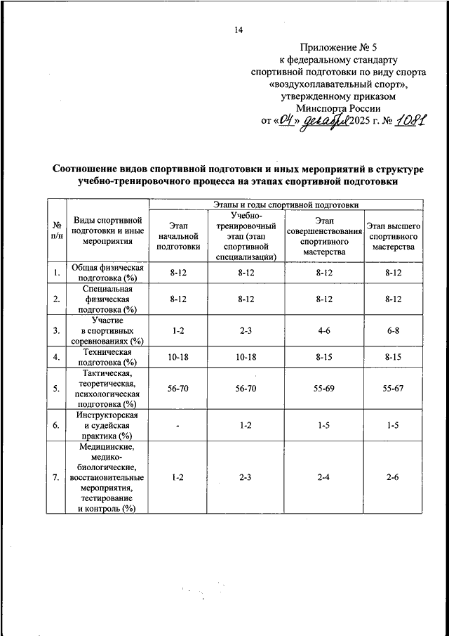 ПРИКАЗ Минспорта РФ от 04.12.2025 N 1081