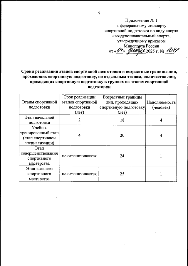 ПРИКАЗ Минспорта РФ от 04.12.2025 N 1081