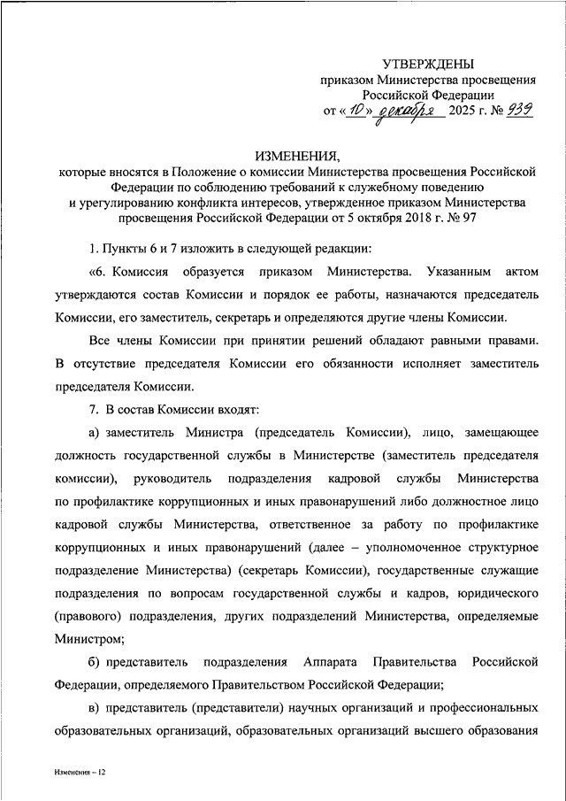 ПРИКАЗ Минпросвещения России от 10.12.2025 N 939