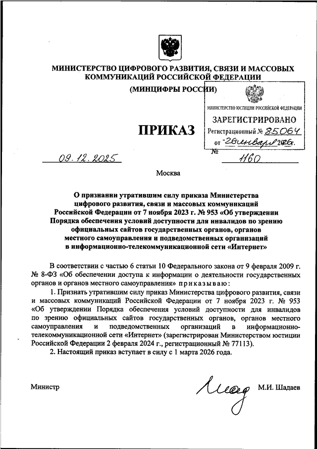 ПРИКАЗ Минцифры России от 09.12.2025 N 1160