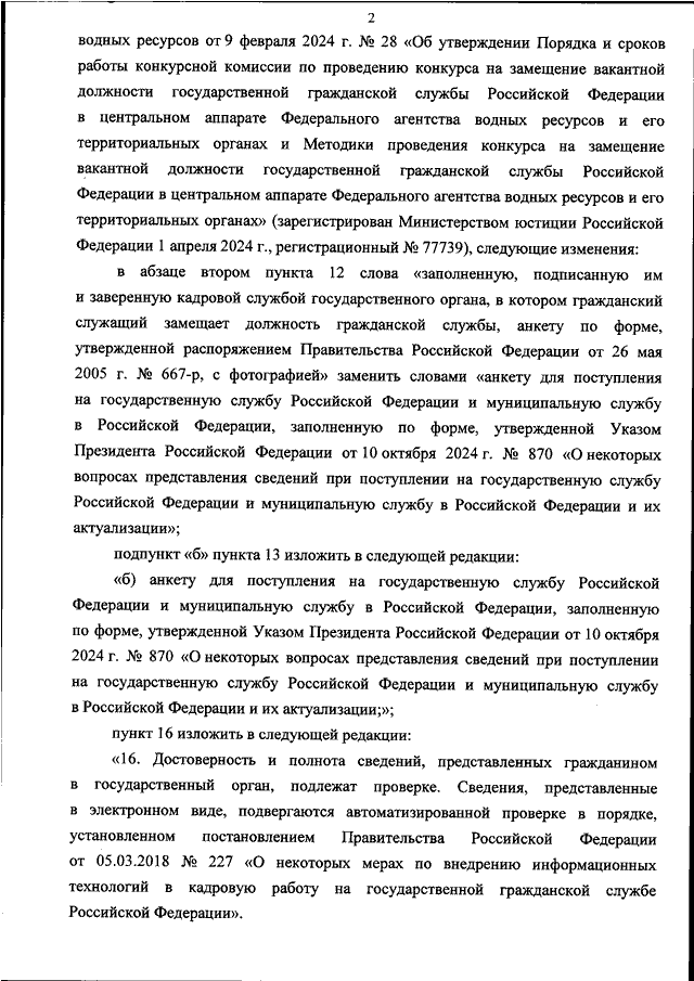 ФЕДЕРАЛЬНОГО АГЕНТСТВА ВОДНЫХ РЕСУРСОВ ОТ 9 ФЕВРАЛЯ 2024 Г. N 28"
