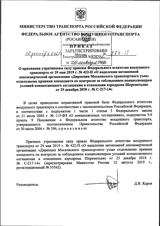 ПРИКАЗ Росавиации от 16.12.2025 N 964-П