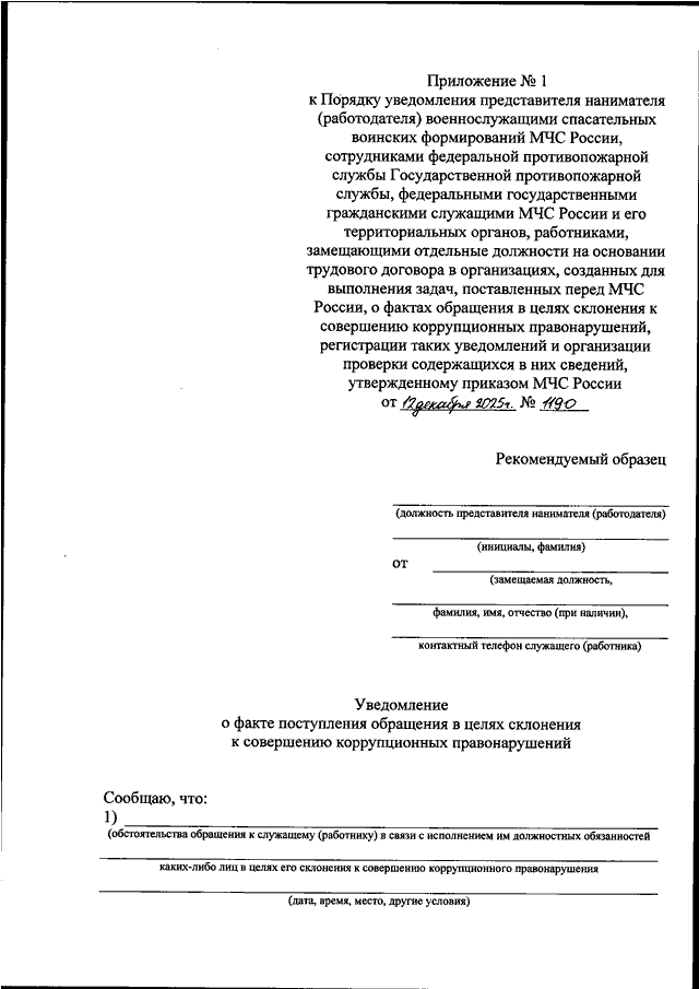ПРИКАЗ МЧС РФ от 12.12.2025 N 1190