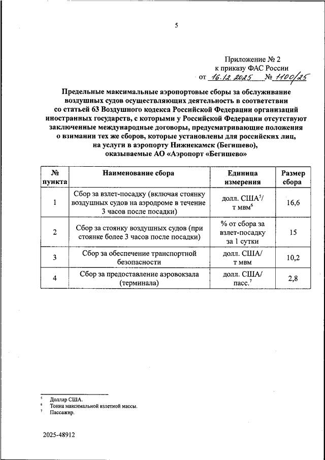 "ОБ УТВЕРЖДЕНИИ ПРЕДЕЛЬНЫХ МАКСИМАЛЬНЫХ АЭРОПОРТОВЫХ СБОРОВ И ТАРИФОВ ЗА ОБСЛУЖИВАНИЕ ВОЗДУШНЫХ СУДОВ ЮРИДИЧЕСКИХ ЛИЦ, ИНДИВИДУАЛЬНЫХ ПРЕДПРИНИМАТЕЛЕЙ И ФИЗИЧЕСКИХ ЛИЦ, ОСУЩЕСТВЛЯЮЩИХ КОММЕРЧЕСКИЕ ВОЗДУШНЫЕ ПЕРЕВОЗКИ, АВИАЦИОННЫЕ РАБОТЫ, ПОЛЕТЫ АВИАЦИИ ОБЩЕГО НАЗНАЧЕНИЯ, ОРГАНИЗАЦИЙ ЭКСПЕРИМЕНТАЛЬНОЙ И ГОСУДАРСТВЕННОЙ АВИАЦИИ, ОСУЩЕСТВЛЯЮЩИХ ДЕЯТЕЛЬНОСТЬ В СООТВЕТСТВИИ СО СТАТЬЕЙ 63 ВОЗДУШНОГО КОДЕКСА РОССИЙСКОЙ ФЕДЕРАЦИИ ОРГАНИЗАЦИЙ ИНОСТРАННЫХ ГОСУДАРСТВ, С КОТОРЫМИ РОССИЙСКОЙ ФЕДЕРАЦИЕЙ ЗАКЛЮЧЕНЫ МЕЖДУНАРОДНЫЕ ДОГОВОРЫ, ПРЕДУСМАТРИВАЮЩИЕ ПОЛОЖЕНИЯ О ВЗИМАНИИ ТЕХ ЖЕ СБОРОВ И ТАРИФОВ, КОТОРЫЕ УСТАНОВЛЕНЫ ДЛЯ РОССИЙСКИХ ЛИЦ, И ПРЕДЕЛЬНЫХ МАКСИМАЛЬНЫХ АЭРОПОРТОВЫХ СБОРОВ ЗА ОБСЛУЖИВАНИЕ ВОЗДУШНЫХ СУДОВ ОСУЩЕСТВЛЯЮЩИХ ДЕЯТЕЛЬНОСТЬ В СООТВЕТСТВИИ СО СТАТЬЕЙ 63 ВОЗДУШНОГО КОДЕКСА РОССИЙСКОЙ ФЕДЕРАЦИИ ОРГАНИЗАЦИЙ ИНОСТРАННЫХ ГОСУДАРСТВ, С КОТОРЫМИ У РОССИЙСКОЙ ФЕДЕРАЦИИ ОТСУТСТВУЮТ ЗАКЛЮЧЕННЫЕ МЕЖДУНАРОДНЫЕ ДОГОВОРЫ, ПРЕДУСМАТРИВАЮЩИЕ ПОЛОЖЕНИЯ О ВЗИМАНИИ ТЕХ ЖЕ СБОРОВ, КОТОРЫЕ УСТАНОВЛЕНЫ ДЛЯ РОССИЙСКИХ ЛИЦ, НА УСЛУГИ В АЭРОПОРТУ НИЖНЕКАМСК (БЕГИШЕВО), ОКАЗЫВАЕМЫЕ АО "АЭРОПОРТ "БЕГИШЕВО"