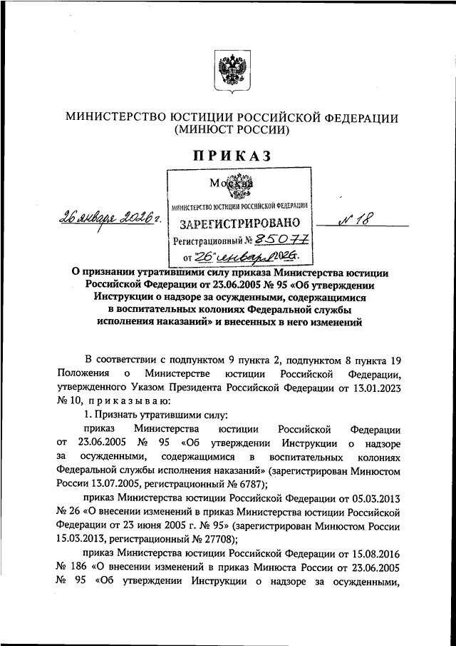 ПРИКАЗ Минюста РФ от 26.01.2026 N 18