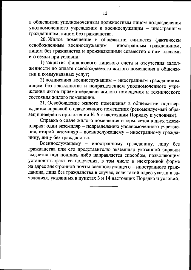 "ОБ ОПРЕДЕЛЕНИИ ПОРЯДКА И УСЛОВИЙ ПРЕДОСТАВЛЕНИЯ ВОЕННОСЛУЖАЩИМ ИЗ ЧИСЛА ИНОСТРАННЫХ ГРАЖДАН И ЛИЦ БЕЗ ГРАЖДАНСТВА, ПРОХОДЯЩИМ ВОЕННУЮ СЛУЖБУ В ВООРУЖЕННЫХ СИЛАХ РОССИЙСКОЙ ФЕДЕРАЦИИ, ЖИЛЫХ ПОМЕЩЕНИЙ В ОБЩЕЖИТИЯХ И ОСВОБОЖДЕНИЯ ИМИ ЭТИХ ПОМЕЩЕНИЙ"