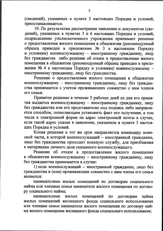 "ОБ ОПРЕДЕЛЕНИИ ПОРЯДКА И УСЛОВИЙ ПРЕДОСТАВЛЕНИЯ ВОЕННОСЛУЖАЩИМ ИЗ ЧИСЛА ИНОСТРАННЫХ ГРАЖДАН И ЛИЦ БЕЗ ГРАЖДАНСТВА, ПРОХОДЯЩИМ ВОЕННУЮ СЛУЖБУ В ВООРУЖЕННЫХ СИЛАХ РОССИЙСКОЙ ФЕДЕРАЦИИ, ЖИЛЫХ ПОМЕЩЕНИЙ В ОБЩЕЖИТИЯХ И ОСВОБОЖДЕНИЯ ИМИ ЭТИХ ПОМЕЩЕНИЙ"