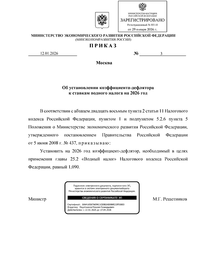 ПРИКАЗ Минэкономразвития РФ от 12.01.2026 N 3