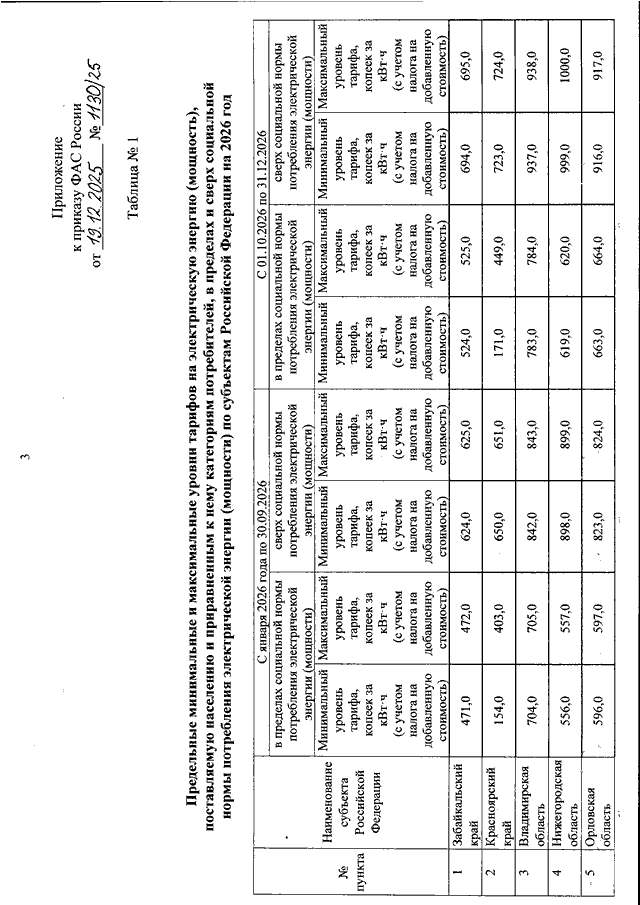 "О ПРЕДЕЛЬНЫХ МИНИМАЛЬНЫХ И МАКСИМАЛЬНЫХ УРОВНЯХ ТАРИФОВ НА ЭЛЕКТРИЧЕСКУЮ ЭНЕРГИЮ (МОЩНОСТЬ), ПОСТАВЛЯЕМУЮ НАСЕЛЕНИЮ И ПРИРАВНЕННЫМ К НЕМУ КАТЕГОРИЯМ ПОТРЕБИТЕЛЕЙ, ПО СУБЪЕКТАМ РОССИЙСКОЙ ФЕДЕРАЦИИ НА 2026 ГОД"