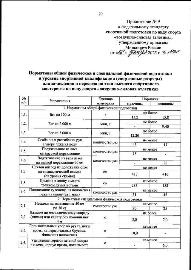 ПРИКАЗ Минспорта РФ от 08.12.2025 N 1101
