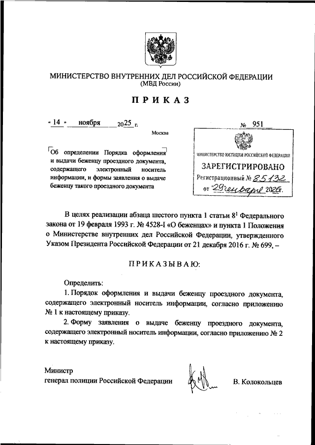 ПРИКАЗ МВД РФ от 14.11.2025 N 951