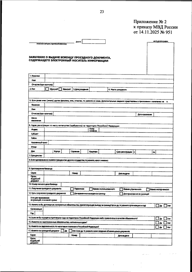 ПРИКАЗ МВД РФ от 14.11.2025 N 951