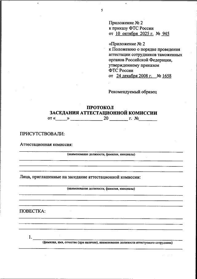 ПРИКАЗ ФТС РФ от 10.10.2025 N 945