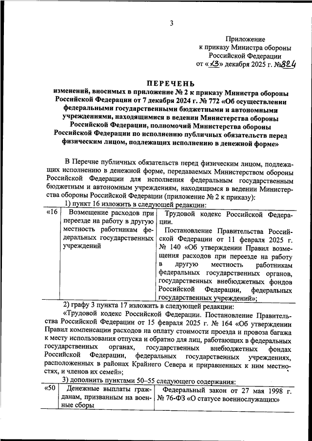 ПРИКАЗ Минобороны РФ от 13.12.2025 N 824