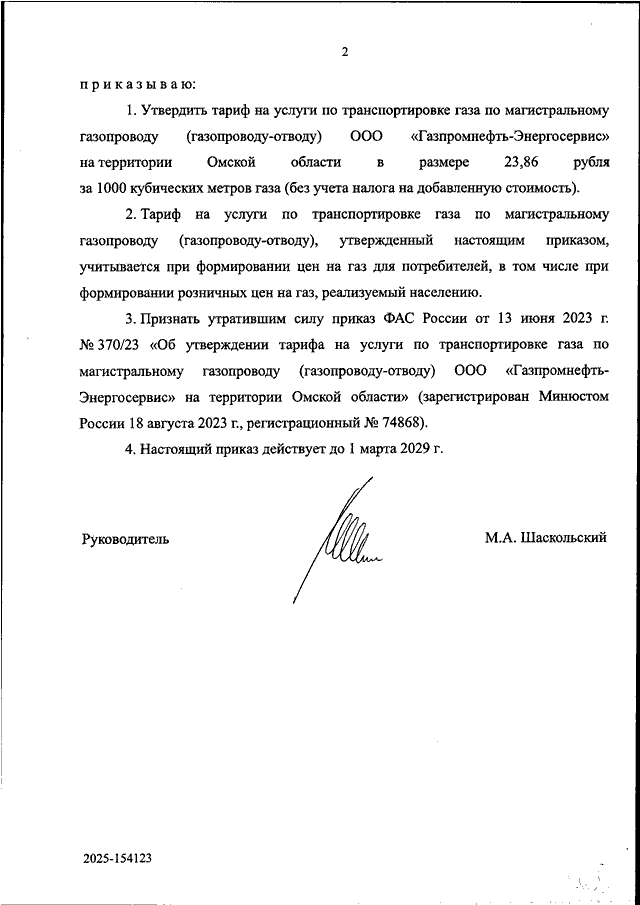 "ОБ УТВЕРЖДЕНИИ ТАРИФА НА УСЛУГИ ПО ТРАНСПОРТИРОВКЕ ГАЗА ПО МАГИСТРАЛЬНОМУ ГАЗОПРОВОДУ (ГАЗОПРОВОДУ - ОТВОДУ) ООО "ГАЗПРОМНЕФТЬ - ЭНЕРГОСЕРВИС" НА ТЕРРИТОРИИ ОМСКОЙ ОБЛАСТИ"