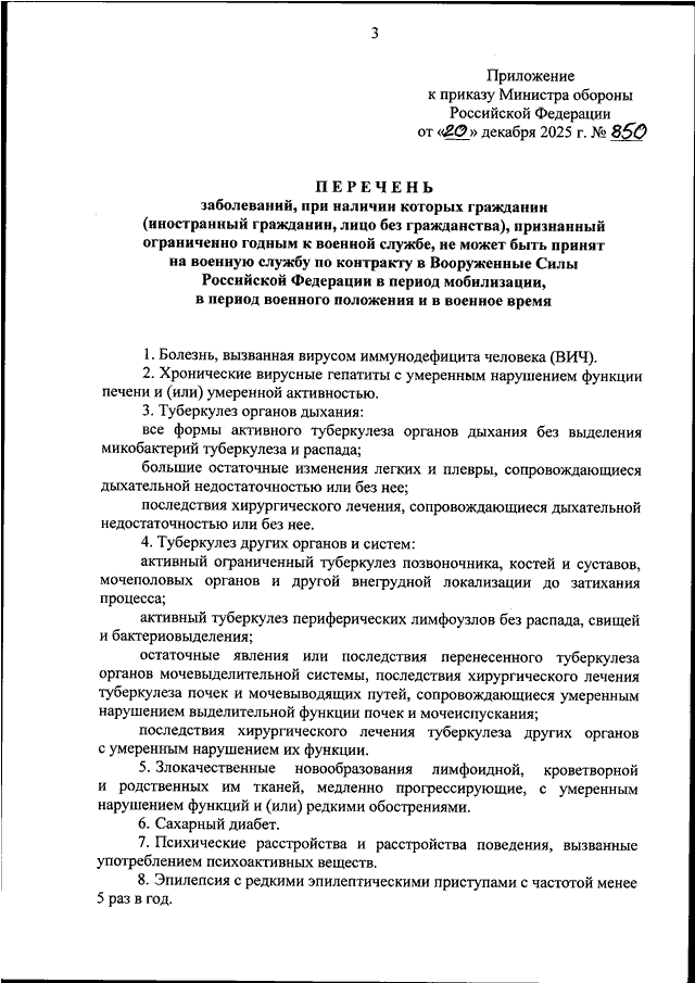 ПРИКАЗ Минобороны РФ от 20.12.2025 N 850