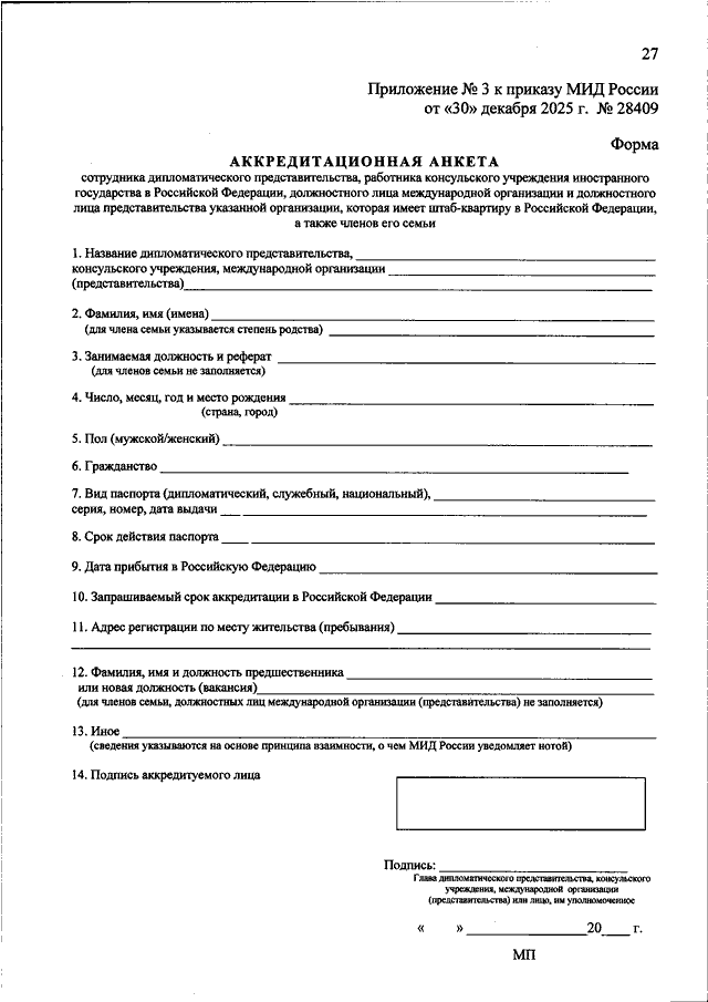 ПРИКАЗ МИД РФ от 30.12.2025 N 28409