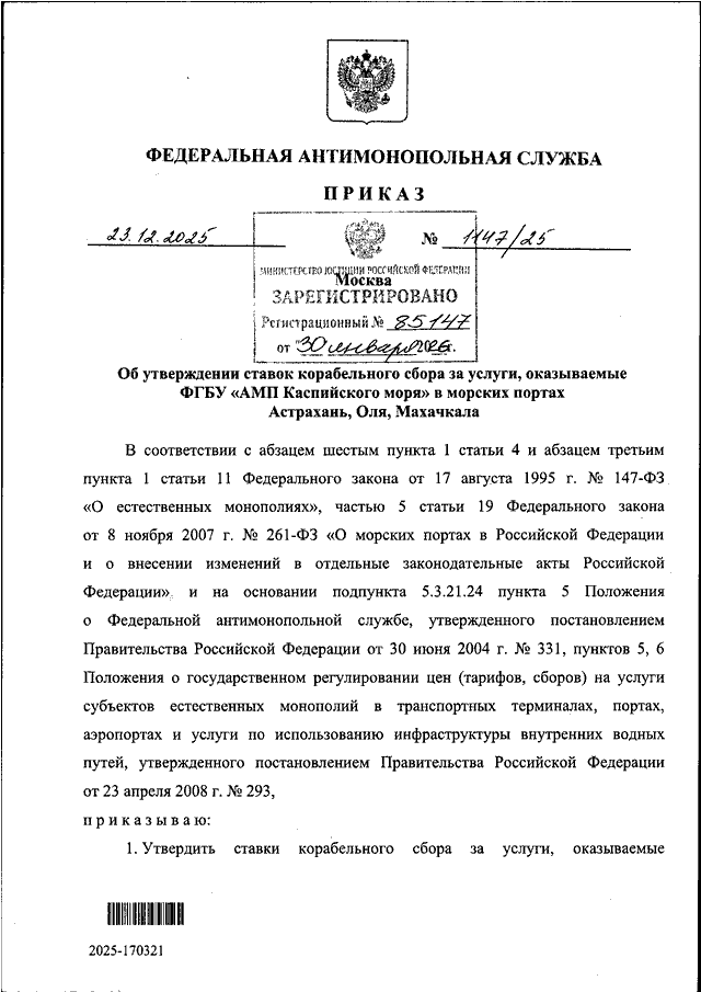 ПРИКАЗ Федеральной антимонопольной службы от 23.12.2025 N 1147/25