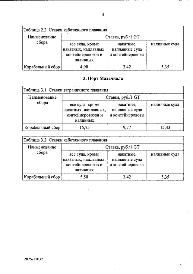 "ОБ УТВЕРЖДЕНИИ СТАВОК КОРАБЕЛЬНОГО СБОРА ЗА УСЛУГИ, ОКАЗЫВАЕМЫЕ ФГБУ "АМП КАСПИЙСКОГО МОРЯ" В МОРСКИХ ПОРТАХ АСТРАХАНЬ, ОЛЯ, МАХАЧКАЛА"