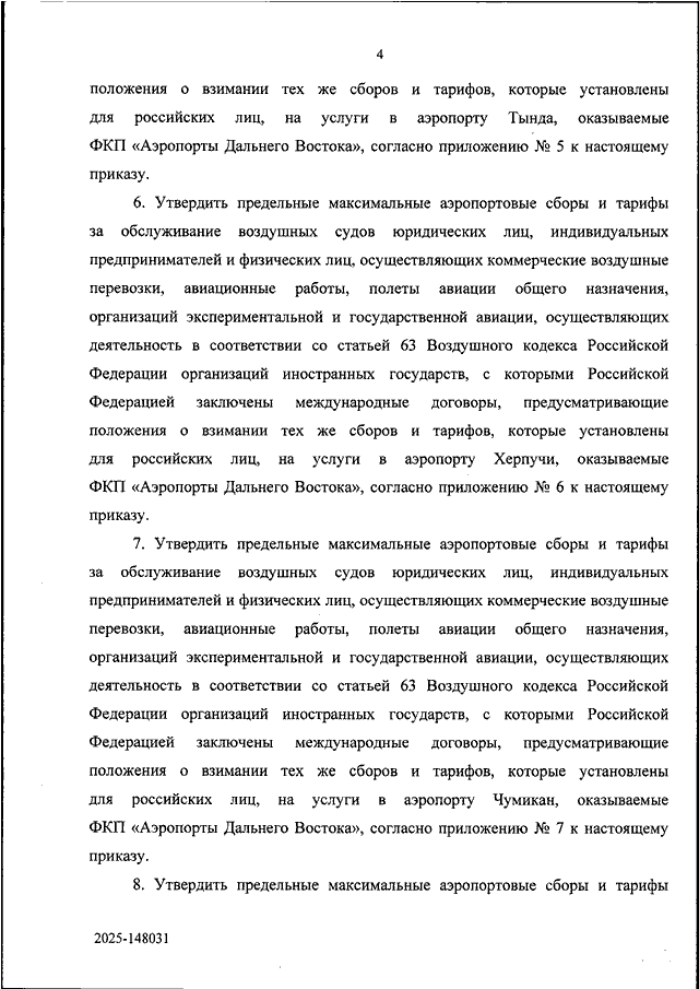 "ОБ УТВЕРЖДЕНИИ ПРЕДЕЛЬНЫХ МАКСИМАЛЬНЫХ АЭРОПОРТОВЫХ СБОРОВ И ТАРИФОВ ЗА ОБСЛУЖИВАНИЕ ВОЗДУШНЫХ СУДОВ ЮРИДИЧЕСКИХ ЛИЦ, ИНДИВИДУАЛЬНЫХ ПРЕДПРИНИМАТЕЛЕЙ И ФИЗИЧЕСКИХ ЛИЦ, ОСУЩЕСТВЛЯЮЩИХ КОММЕРЧЕСКИЕ ВОЗДУШНЫЕ ПЕРЕВОЗКИ, АВИАЦИОННЫЕ РАБОТЫ, ПОЛЕТЫ АВИАЦИИ ОБЩЕГО НАЗНАЧЕНИЯ, ОРГАНИЗАЦИЙ ЭКСПЕРИМЕНТАЛЬНОЙ И ГОСУДАРСТВЕННОЙ АВИАЦИИ, ОСУЩЕСТВЛЯЮЩИХ ДЕЯТЕЛЬНОСТЬ В СООТВЕТСТВИИ СО СТАТЬЕЙ 63 ВОЗДУШНОГО КОДЕКСА РОССИЙСКОЙ ФЕДЕРАЦИИ ОРГАНИЗАЦИЙ ИНОСТРАННЫХ ГОСУДАРСТВ, С КОТОРЫМИ РОССИЙСКОЙ ФЕДЕРАЦИЕЙ ЗАКЛЮЧЕНЫ МЕЖДУНАРОДНЫЕ ДОГОВОРЫ, ПРЕДУСМАТРИВАЮЩИЕ ПОЛОЖЕНИЯ О ВЗИМАНИИ ТЕХ ЖЕ СБОРОВ И ТАРИФОВ, КОТОРЫЕ УСТАНОВЛЕНЫ ДЛЯ РОССИЙСКИХ ЛИЦ, НА УСЛУГИ В АЭРОПОРТАХ АЯН (МУНУК), БОГОРОДСКОЕ, ЗЕЯ, ОХОТСК, ТЫНДА, ХЕРПУЧИ, ЧУМИКАН, ЭКИМЧАН, ОКАЗЫВАЕМЫЕ ФКП "АЭРОПОРТЫ ДАЛЬНЕГО ВОСТОКА"