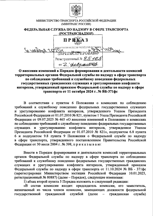 НАДЗОРУ В СФЕРЕ ТРАНСПОРТА ОТ 11 ОКТЯБРЯ 2024 Г. N ВБ-371ФС"