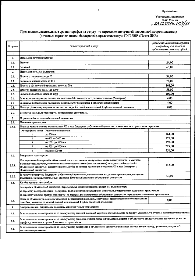 "ОБ УТВЕРЖДЕНИИ ПРЕДЕЛЬНЫХ МАКСИМАЛЬНЫХ УРОВНЕЙ ТАРИФОВ НА УСЛУГУ ПО ПЕРЕСЫЛКЕ ВНУТРЕННЕЙ ПИСЬМЕННОЙ КОРРЕСПОНДЕНЦИИ (ПОЧТОВЫХ КАРТОЧЕК, ПИСЕМ, БАНДЕРОЛЕЙ), ПРЕДОСТАВЛЯЕМУЮ ГУП ЛНР "ПОЧТА ЛНР"