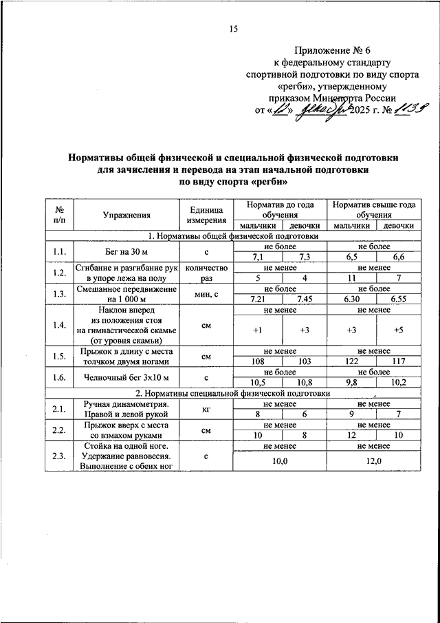 ПРИКАЗ Минспорта РФ от 12.12.2025 N 1139