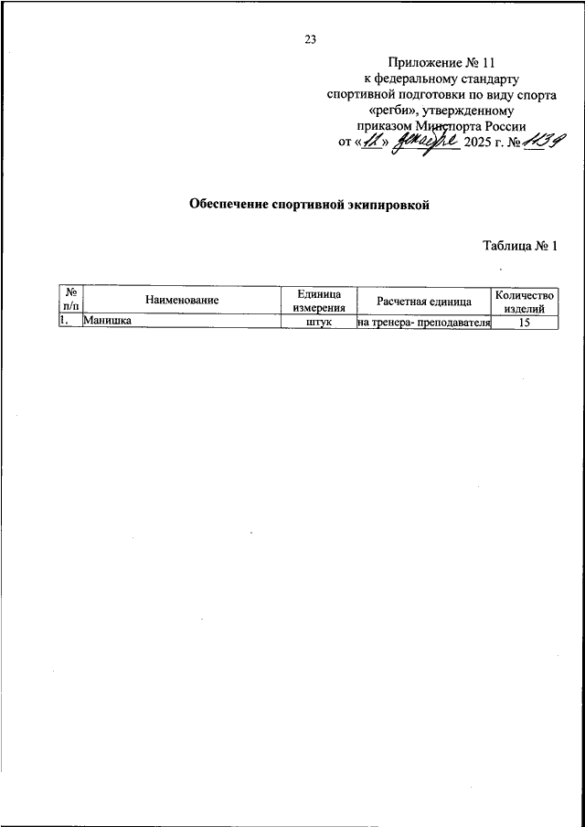 ПРИКАЗ Минспорта РФ от 12.12.2025 N 1139