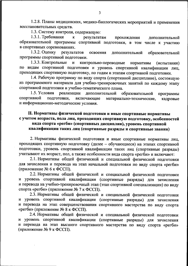 "ОБ УТВЕРЖДЕНИИ ФЕДЕРАЛЬНОГО СТАНДАРТА СПОРТИВНОЙ ПОДГОТОВКИ ПО ВИДУ СПОРТА "РЕГБИ"