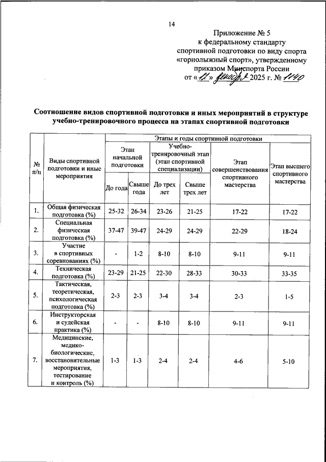 ПРИКАЗ Минспорта РФ от 12.12.2025 N 1140