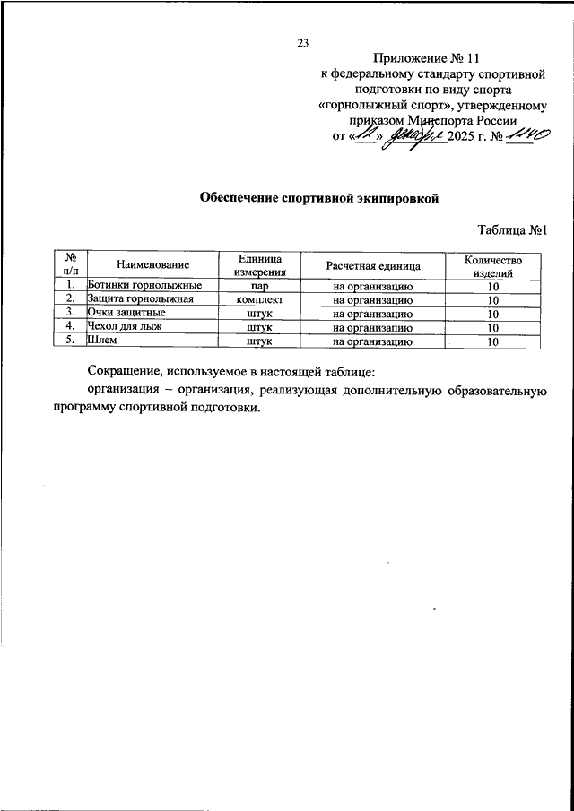 ПРИКАЗ Минспорта РФ от 12.12.2025 N 1140