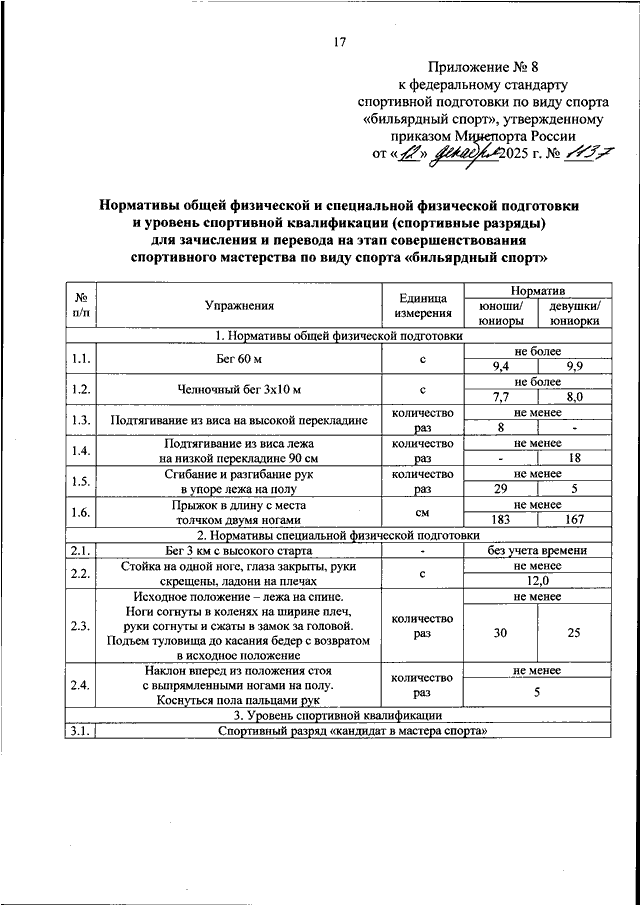 ПРИКАЗ Минспорта РФ от 12.12.2025 N 1137