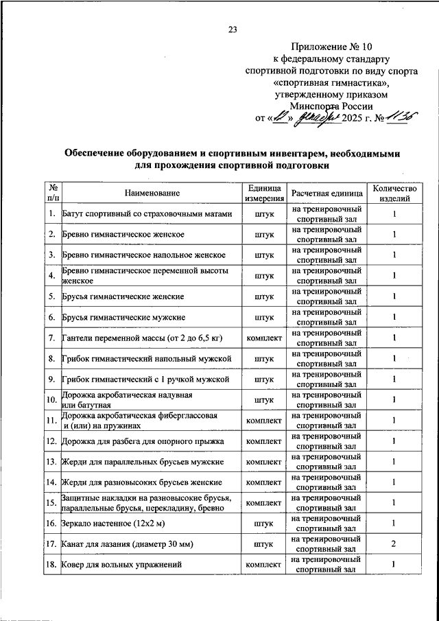 ПРИКАЗ Минспорта РФ от 12.12.2025 N 1136