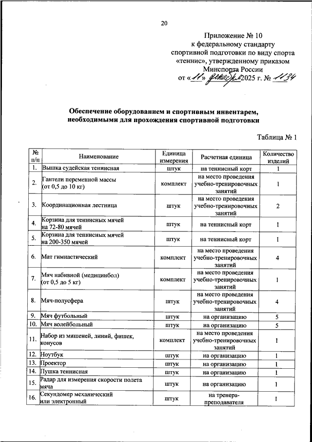 ПРИКАЗ Минспорта РФ от 11.12.2025 N 1134